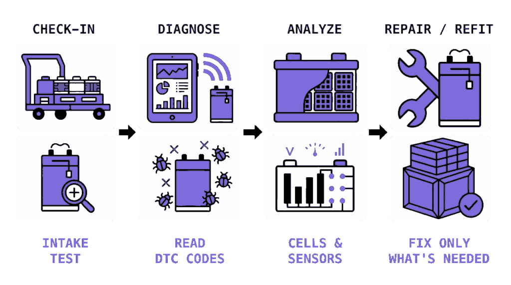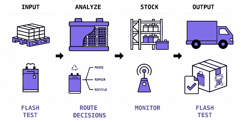 Chaque batterie en fin de première vie mĂ©rite d’ĂŞtre valorisĂ©e au mieux. Encore faut-il savoir quelle est la meilleure filière pour elle. Une fois en stock, ces batteries peuvent se dĂ©grader silencieusement, voire prĂ©senter un risque d’incendie. Et sans test avant expĂ©dition, il est impossible de garantir Ă  l’acheteur l’Ă©tat rĂ©el de la batterie au moment de la vente.
